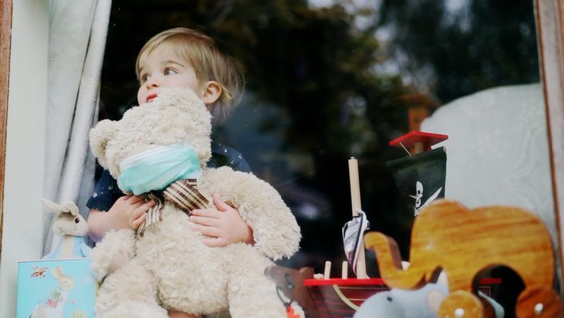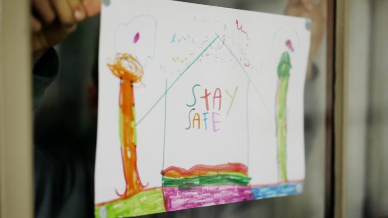 玩具R US'圣诞节商业已倾向于Covid-19大流行对今年即将来临的节日季节的影响。Set inside, the first part of the ad features a child’s drawing with the message ‘Stay Safe’ blu-tacked to a window, parents working from home, a girl surveying a closed playground, and families on video calls, all set to a slow, emotional rendition of ‘Auld Lang Syne’.