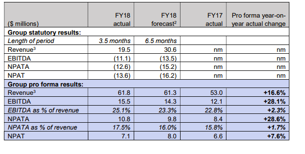 Trimantium GrowthOps的预测是基于该集团将在2018财年的6个半月内在澳大利亚证券交易所上市的假设,然而,由于一些延误——包括国际资金的停滞——直到3月中旬才成功上市。