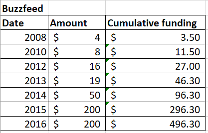 由于Buzzfeed首次参加了11年以来,已经有11年了,而且达到了100万美元的融资,现在已经五岁了。上市时间(2015年)的盒子有大约15800万美元的资金,这是五岁或多年来的资金,它在第一轮后九年爬到了九年。