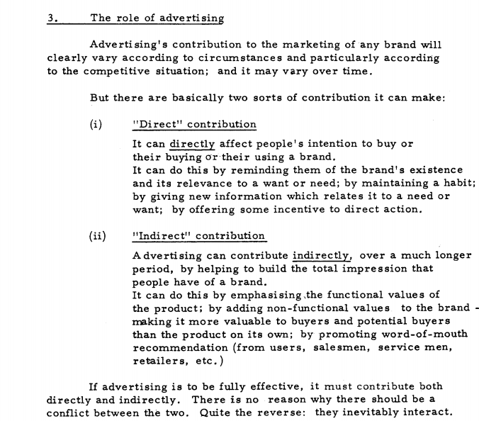 3)”如果广告要完全有效,就必须有直接和间接的贡献。”