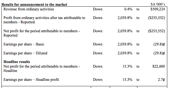 首先,误导性的(点击诱饵)标题显然不能代表今天呈现的实际结果(假设写它的人有金融头脑)。结果是下降的——但损失纯粹是合理的资产负债表修正的结果。
