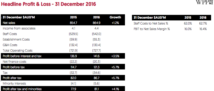 在一份声明中澳交所,康诺翰说:“我们所取得的进步感到很满意在2016年在合并后的集团。我们的商业模式继续实现有机增长以及未来通过全球WPP集团的扩张机会。特别是,合并提供了令人兴奋的途径为我们的人才和创造市场领先服务为我们的客户。