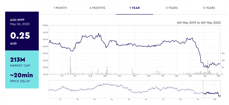 WPP AUNZ的股价已经跌至25 c,从56 c去年的这个时候,市值213美元。