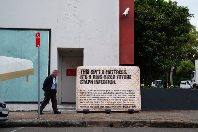 澳大利亚每年有超过180万张含有细菌和皮肤细胞的床垫被非法丢弃,该运动利用了这一发现,处决者将10PM的澳大利亚制造的杀菌床垫定位为明显的解药。