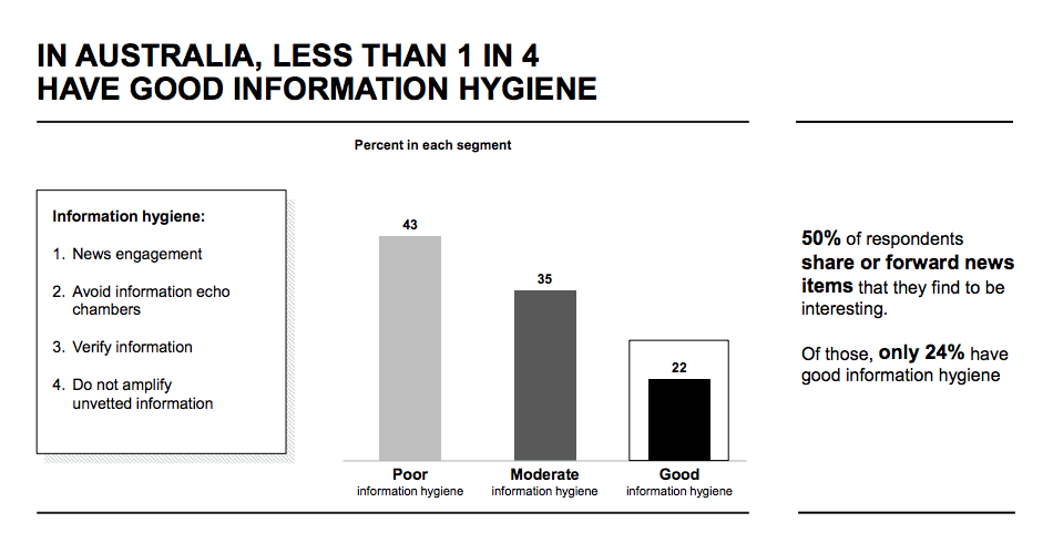 尽管如此,仅有22%的受访者被发现有良好的卫生信息,定义为订婚的消息,验证信息,避免信息回音室,而不是放大unvetted信息。50%的受访者表示,他们分享或他们感兴趣的新闻。