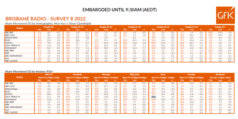 布里斯班无线电评级:打击网络导致整体新星的凯特,蒂姆和乔尔主导驱动尽管阵容变化