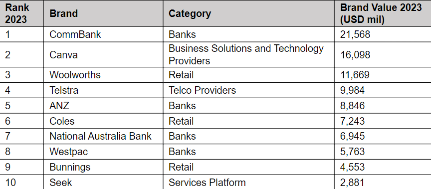 CommBank(澳洲联邦银行)已经超过2023年的坎塔尔BrandZ排名,夺冠的最具价值的品牌在澳大利亚的品牌价值216亿美元(323亿美元)。
