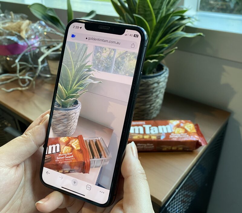 阿诺特的蒂姆Tam发起了一个购物者营销活动使用增强现实(AR),让消费者有机会找到“黄金蒂姆Tam”,赢得5000美元。