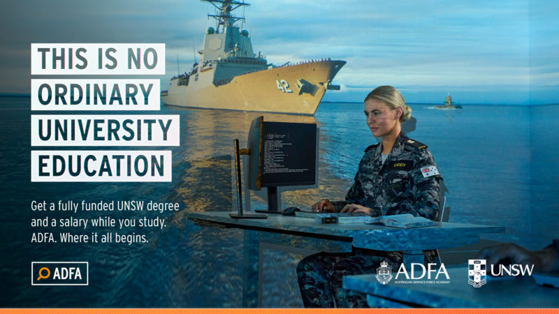 创意总监VMLY&R詹姆斯遗嘱,补充道:“还有没有别的地方像ADFA学习。你会把一个大学学位与军事训练。和获得报酬。有保障的工作,当你毕业。对于年轻的澳大利亚国防部队的职业感兴趣,ADFA真的是一切开始的地方。”