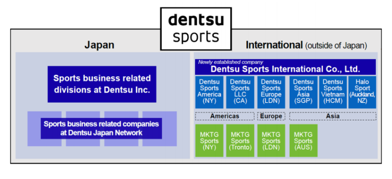 日本电通集团在媒体发布会上表示,此举将“增加其在体育业务领域的优势和协同效应最大化”,让它“全面巩固和促进其功能在这一领域全球DSI之下。”