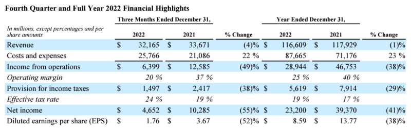 2022年全年收入为1160亿美元(1620亿澳元),同比下降1%。净利润为232亿美元(合325亿澳元),同比下降41%。