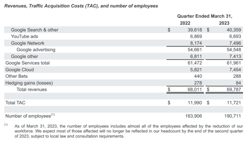 季度末的员工人数是190711。然而,这包括大多数的劳动力的影响今年早些时候,质量冗余谷歌表示将被排除在员工第二季度的结束。