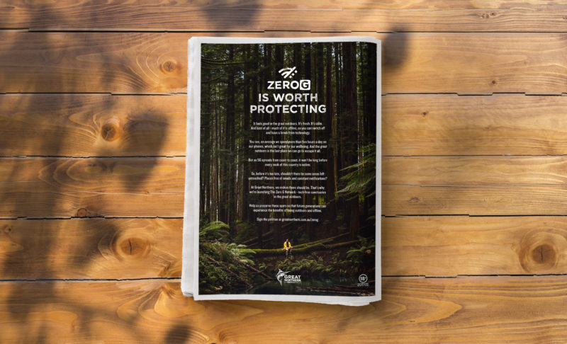 “多年来,我们保护户外的选择区域城市发展的生理效应,但随着数字世界继续蔓延到我们生活的每一个角落,时间快到了,我们需要一些tech-free保护区。”吉姆•柯蒂斯说墨尔本Clemenger的执行创意总监制订。