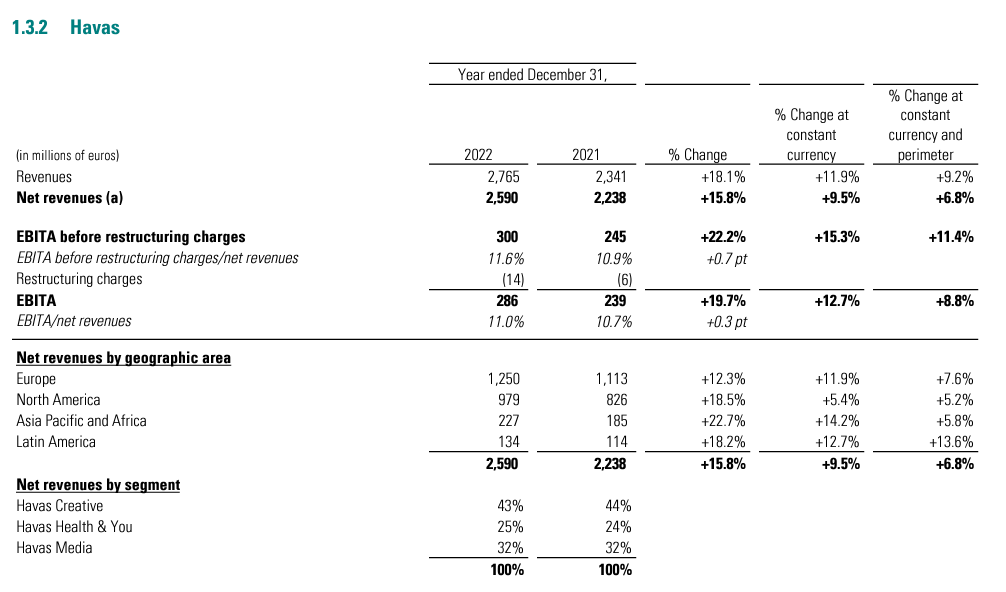 段,哈瓦斯创造性贡献了将近一半的收入,其次是哈瓦斯媒体和哈瓦斯健康与你分别增加了32%和25%。