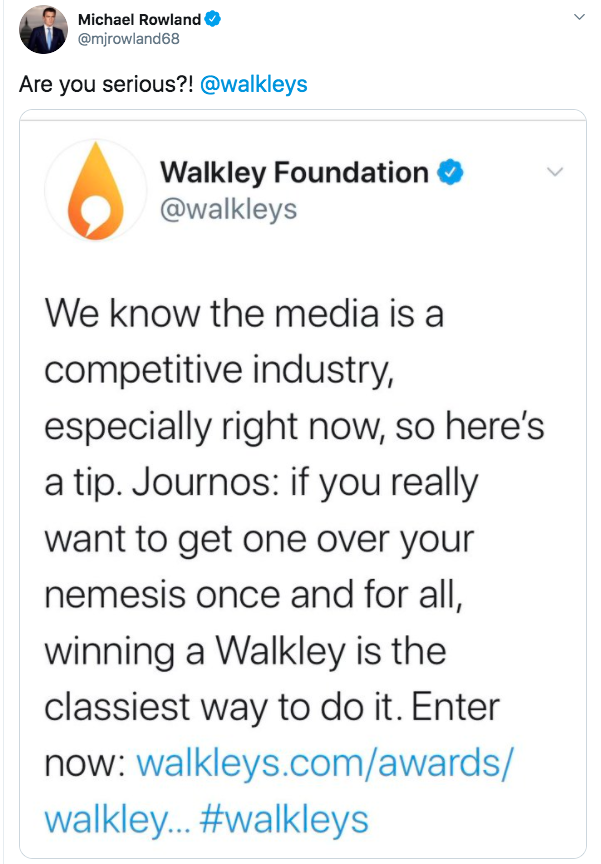 当Walkley基金会承认这是“不合适,不属于我们的价值观”,并为“这可能造成的任何冒犯感到冒犯”而道歉,为此表示贡献,所说的“跛脚”。他是,它出现了,所有这些都是为了通过在芭蕾舞上击败它们来击败你的敌人。