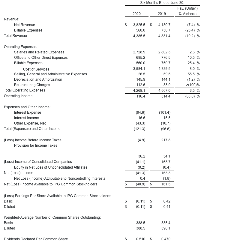 第一季度和第二季度加起来,净收入为38.3亿美元,比2019年上半年的41.3亿美元下降7.4%。