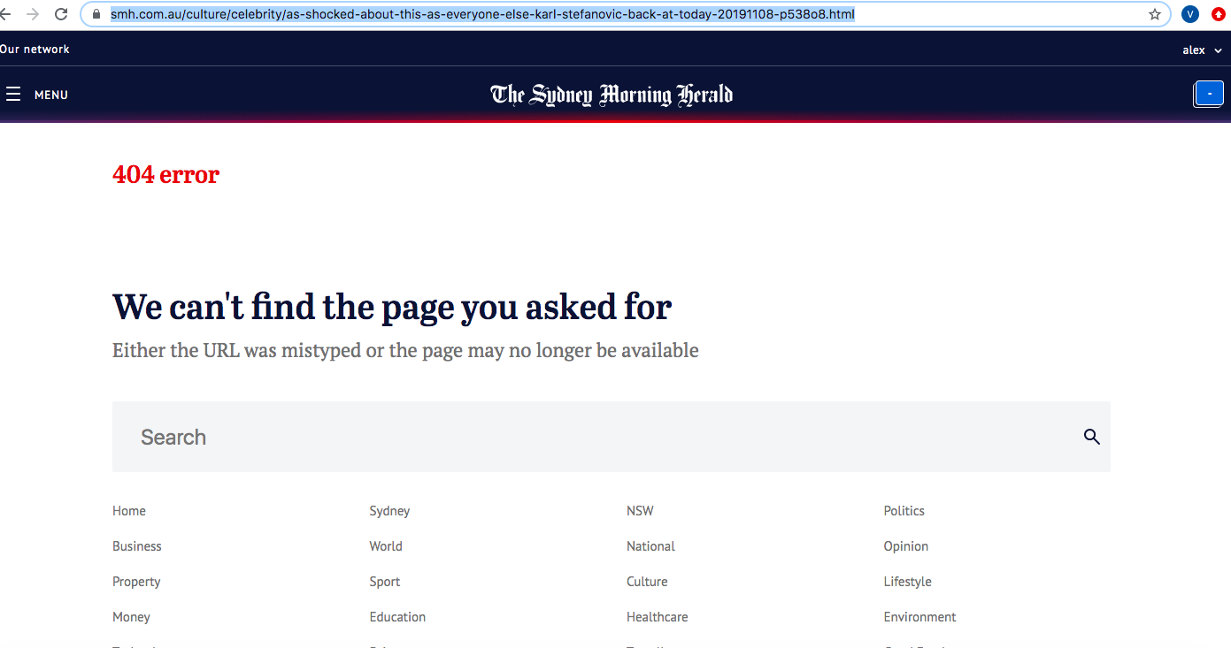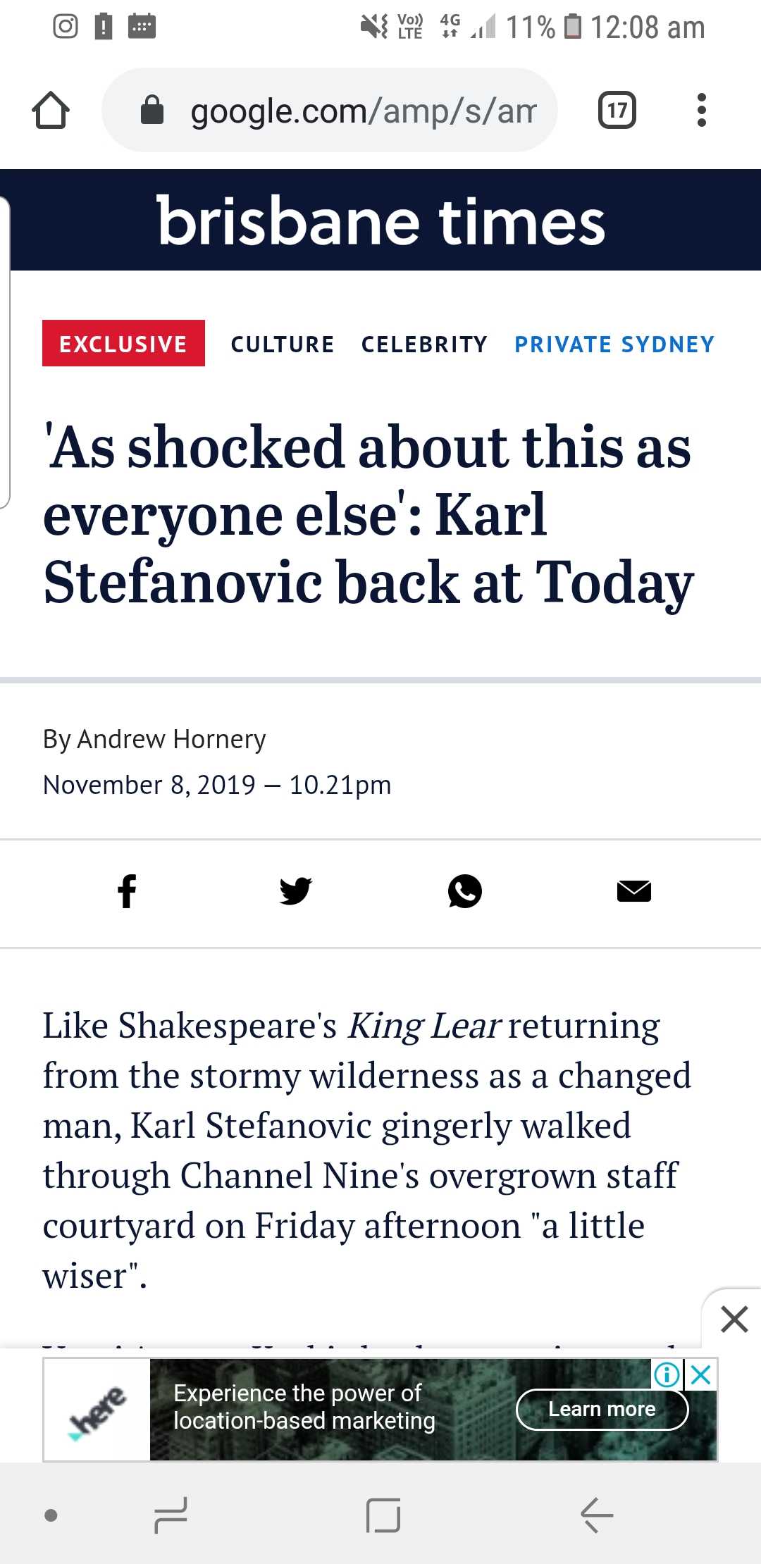 11月11日更新:包括《悉尼先驱晨报》在内的九家报纸在凌晨4点左右在网上转发了对斯特凡诺维奇的采访。这篇文章也登上了周六《SMH》的头版。《九》对这篇报道的暂时消失不予置评。