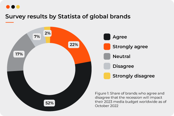 Statista的一项调查得出了同样的结论:75%的受访全球品牌同意或强烈同意,今年经济衰退的可能性会影响他们的品牌媒体预算决策,广告和市场支出。