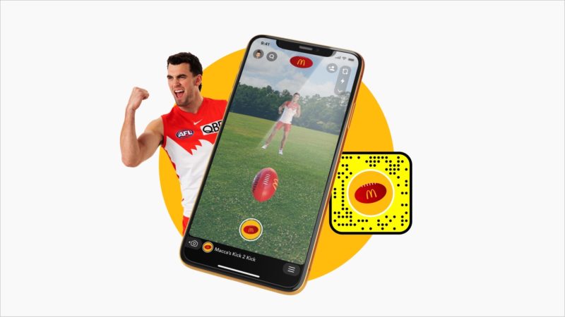 Macca ' s与品牌、产品和传播公司R/GA合作推出了AR足球体验,澳大利亚人只要在Snapchat上搜索“麦当劳澳大利亚”或在通讯上扫描Snapcode,就可以在任何地方享受AR足球体验。
