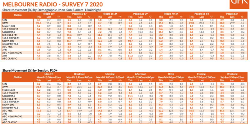 墨尔本电台评级:九广播3 aw封锁继续占主导地位