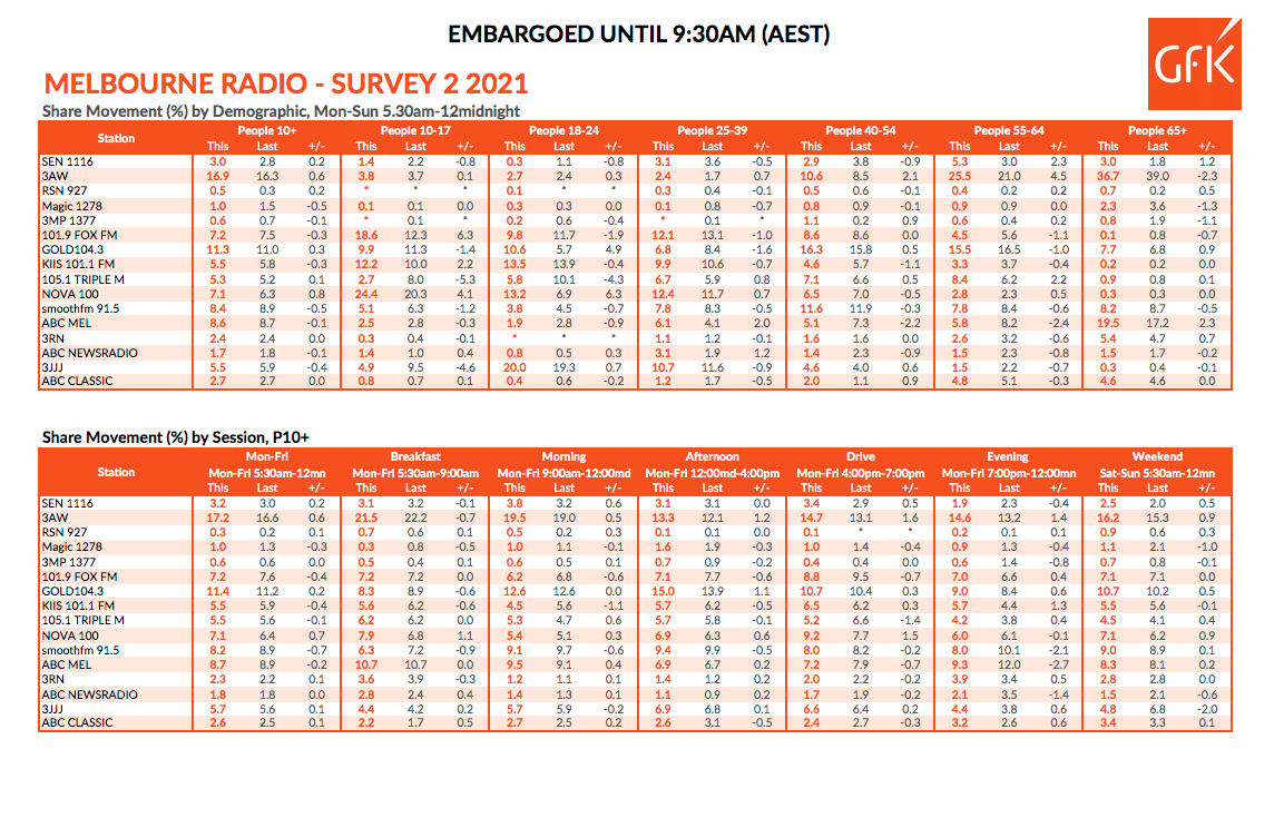 今年的第二轮墨尔本无线电评级发表一些惊喜和更少运动,随着市场似乎是解决后动荡的2020年。
