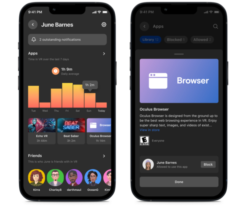 “我们知道我们有责任帮助人们安全的在我们的平台上。从单人游戏和应用程序到社会经历,行为规范仍在建立,虚拟现实呈现独特的好处以及独特的挑战。这些工具的第一步让年轻人体验虚拟现实在一个安全的方式和形式的一部分,一个更广泛的监督和安全工具套件用户在Facebook, Instagram和元设备像元任务2和RayBan故事,”戴维斯说。