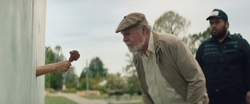无实体的手达到极高的混凝土墙,分隔昆士兰州和新南威尔士州,提供一个奇怪的老人一个简单的羊排。他俯下身,将一口。