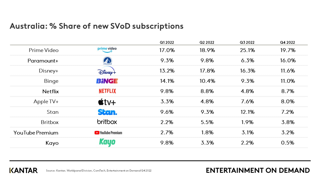 新的SVOD订阅用户青睐亚马逊Prime,派拉蒙+在第四季度的内容:Kantar