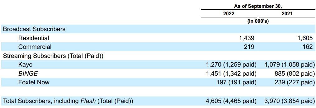 “Kayo付费用户达到近130万,同比增长近19%,由于9月份AFL和NRL赛季结束的典型季节性模式,比第四季度的水平略有下降。