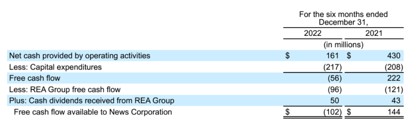 然而,该公司在报告中强调:“该公司认为自由现金流用于新闻集团公司提供了一个更保守的观点的自由现金流,因为这表示仅包括公司实际收到的现金数额REA集团已普遍低于公司的未经调整的自由现金流。