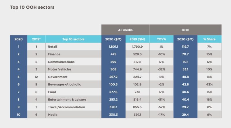 OMA成员生成在澳大利亚接近哦广告收入的80%。在大流行期间,政府、零售、电子商务、银行品牌在该行业的一些顶级广告主。