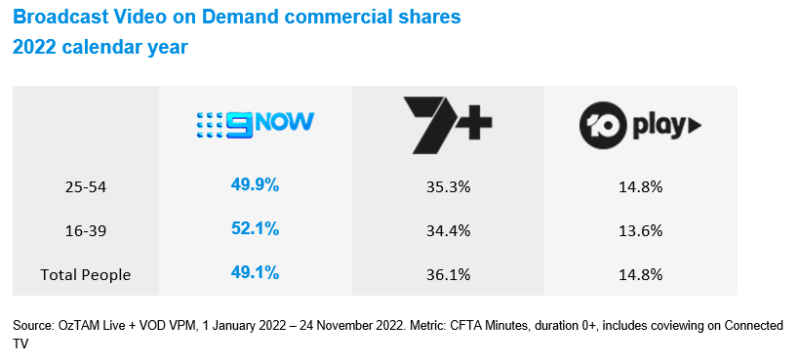 此外,到2022年为止,9Now的直播时间大幅增长,达到78亿分钟,同比增长51%。