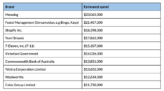Pathmatics的十大广告预算最高的澳大利亚品牌