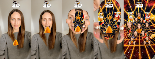 为了融入超凡脱俗的元素,该活动的特色是一个Face Lens,它可以像三角形一样打开Snapchatter的大脑,展示新的3D芯片的所有银河荣耀。一旦头部打开,用户就进入了立体多力多滋3D的万花筒世界。