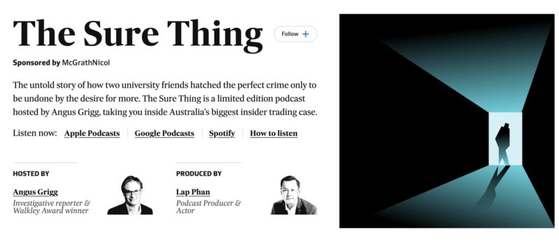 出版商参与澳大利亚士兵包括攻击/ iHeartMedia Audioboom, Babyology, Diamantina,恐惧和贪婪,Kinderling孩子广播,新闻集团(News Corp)澳大利亚,九,新星,Podshape,施瓦茨媒体、SCA、体育娱乐网,订书机媒体,TOFOP Productions,波长有创造力,西澳大利亚报纸,Wondery。
