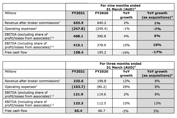 财务报告还包括截至3月31日止的9个月的业绩。该公司同期营收为6.559亿美元,同比增长1%(不包括收购)。与此同时,同期EBITDA增长了10%,达到4.151亿美元。
