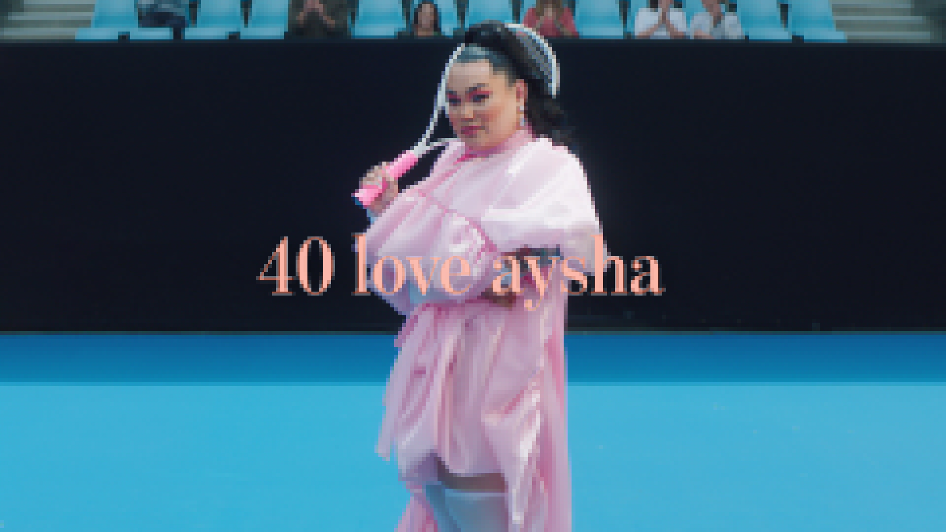 牵头片长30秒,AO大满贯主机Brihony道森并拖动明星和设计师Aysha自助餐(莱恩·Difuntorum)活动连接在网球术语“爱”爱的感觉对日常LGBTQIA +社区的成员。