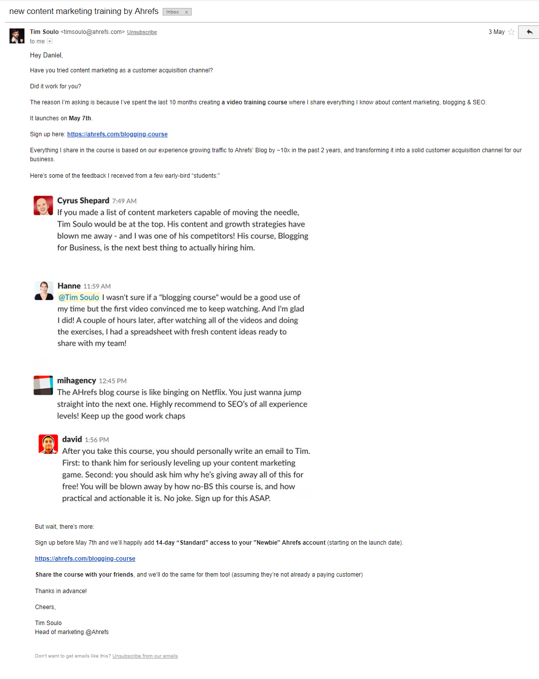 这是一个伟大的纯文本邮件Ahrefs(我知道这封邮件是自动的,但是语气非常对话非常强力的)。