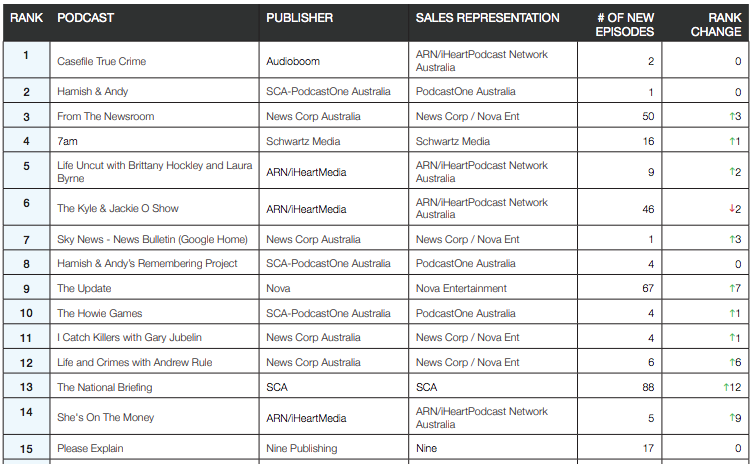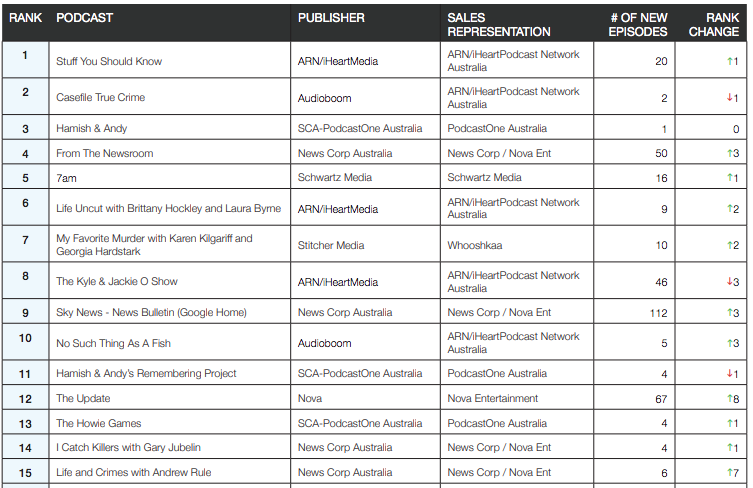虽然从# 1的位置对整个澳大利亚播客士兵Audioboom Casefile真实犯罪保留所有澳大利亚前100强榜首的哈米什,安迪在# 2。