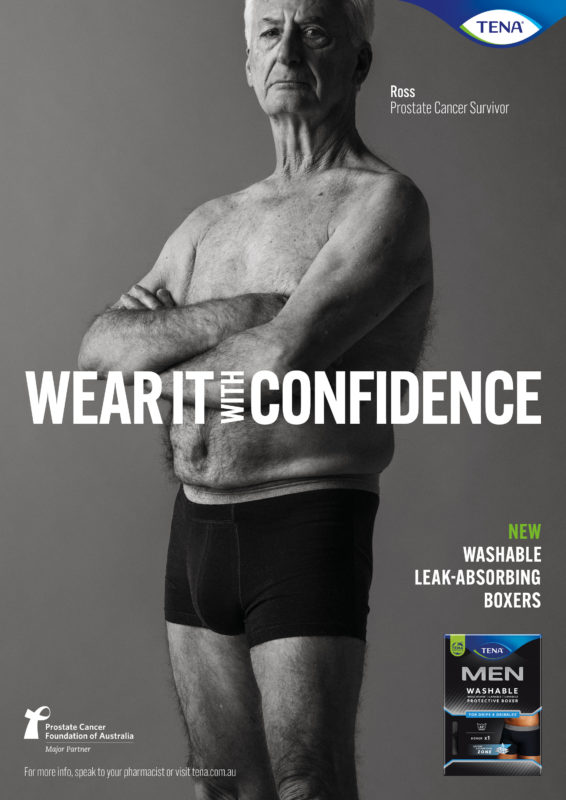 该活动与澳大利亚前列腺癌基金会(PCFA)合作,三位前列腺癌幸存者伊恩、罗斯和史蒂夫穿着这款新内衣,由西蒙·哈森特(Simon Harsent)拍摄和拍摄。男人们分享了他们治疗前列腺癌的故事,面对大小便失禁的经历,以及他们可以自信地穿着谨慎、吸漏的内衣后的解脱。