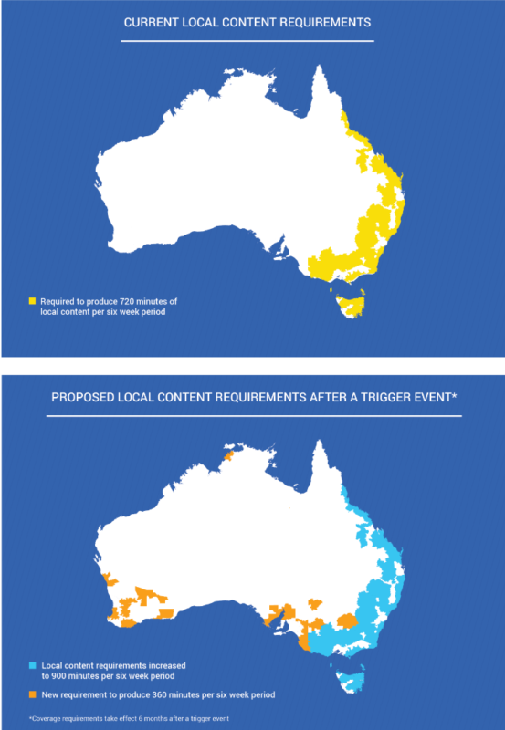 一般来说,电视广播公司将被要求每六周提供900分钟的本地内容(或每天大约半小时)。