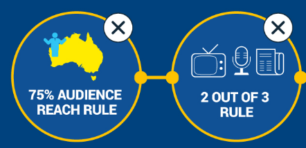 尽管澳大利亚竞争与消费者委员会(Australian Competition & Consumer Commission)仍将在任何交易中拥有发言权,但这将只是一般条款,而不是媒体所有权法的具体条款。