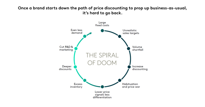 如果你在做盈利的生意,而销售商品的成本上升了,简单的计算表明,定价必须提上日程。对于许多陷入“厄运螺旋”的品牌来说,这将是艰难的。这对许多澳大利亚的营销人员来说是耳熟能详的——只要看看超市货架上黄色贴纸的数量就知道了。