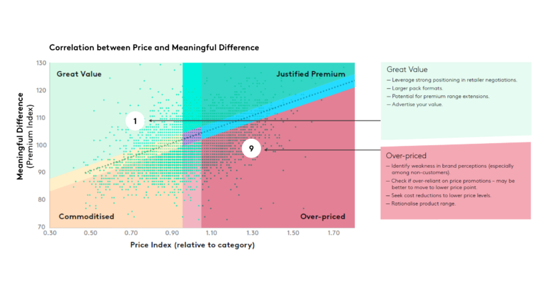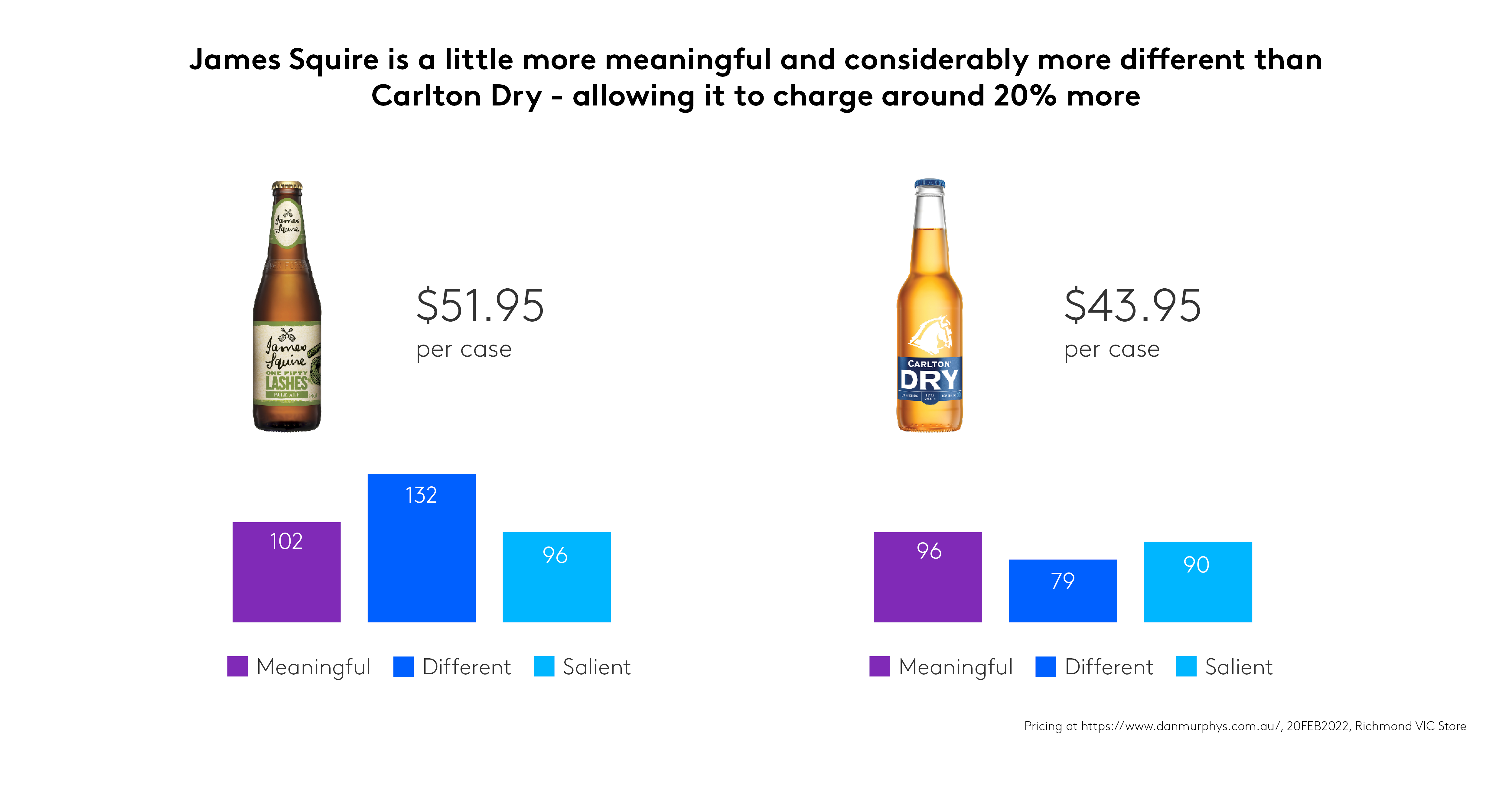 这不仅仅是常识;数据很清楚。人们会为有意义(满足需求,受欢迎)和与众不同(领先或独特)的品牌平均多花24%的钱——你可以在澳大利亚啤酒市场的这个例子中看到这种效应。
