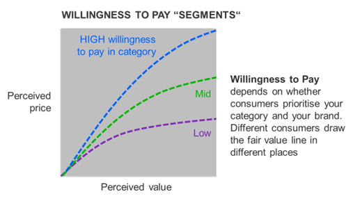 记住,不是每个消费者都有相同的付费意愿我想做的构建(这篇文章的真正主旨)是绝对关键但容易被忽视的一点:并不是每个消费者都有相同的付费意愿.在任何类别中都有多个公允价值线。有些人愿意多付钱,有些人愿意少付钱。这取决于优先级每个消费者都在你的类别上放置。