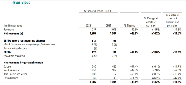 法国控股公司维旺迪发布了其2022年上半年业绩,报告称其全球子公司哈瓦斯传媒集团实现了有机增长和强劲势头。