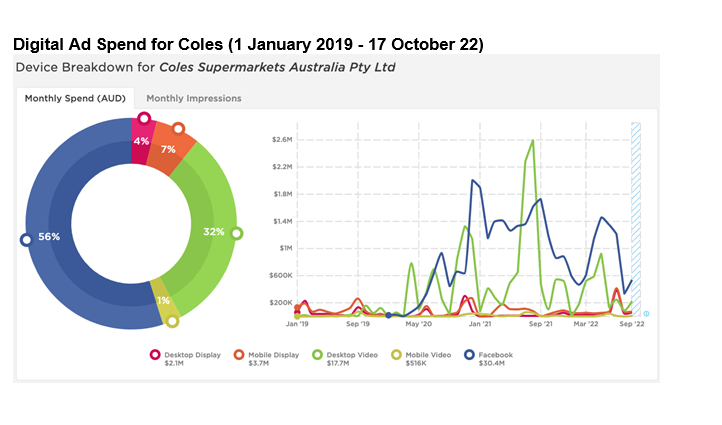 科尔斯花了将近5500万美元在2019 - 2022之间的数字广告的日期。在此期间,科尔斯花了200万美元促进大蒜面包和帕尔玛干酪超过两周的时间这是他们的一个表现最好的广告。