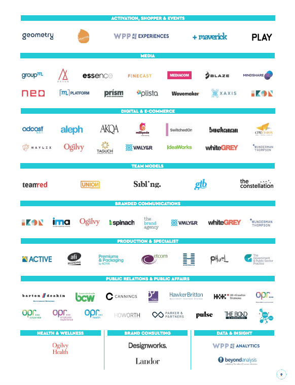 最新几轮并购前的WPP品牌组合。